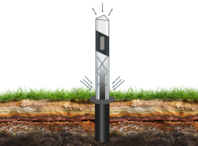 Dank der integrierten Ortungsfunktion lassen sich unsere Leitanker selbst bei hohem Bewuchs oder nach Bankettarbeiten jederzeit problemlos wiederfinden. Für zusätzliche Flexibilität sorgt unser spezieller Zwischenaufsatz: Er ermöglicht eine präzise Höhenanpassung des Leitpfostens, falls sich das Bankettniveau durch Ablagerungen oder Sanierungen verändert hat. So bleibt die Standfestigkeit voll erhalten, ohne dass der Anker neu gesetzt werden muss.