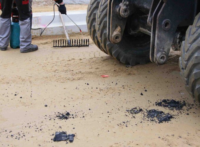 Nach dem Einbau der Abdeckung wird die Dehnfuge gemäß ZTV Fug hergestellt und die noch warme Fuge mit speziellem Abstreumaterial abgestreut. Diese elastische Abdichtung nimmt Bewegungen im Straßenkörper auf, verhindert das Eindringen von Oberflächenwasser und schützt die Konstruktion nachhaltig vor Frostschäden.