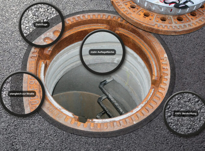 Dank der uneingeschränkten Überfahrbarkeit des Systems wird im und um den Schacht dieselbe Verdichtungsleistung wie auf der restlichen Fahrbahn erzielt. Dies eliminiert die Gefahr späterer Asphalteinbrüche im Schachtbereich und sorgt für ein homogenes, langlebiges Oberflächenbild.