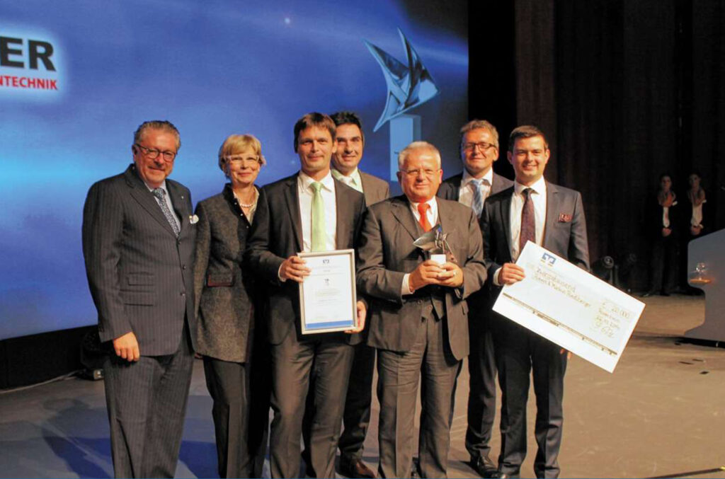 Innovationspreis für das patentierte Verfahren zum passgenauen und plangleichen Einbau von Schachtabdeckungen im Straßenneubau.
